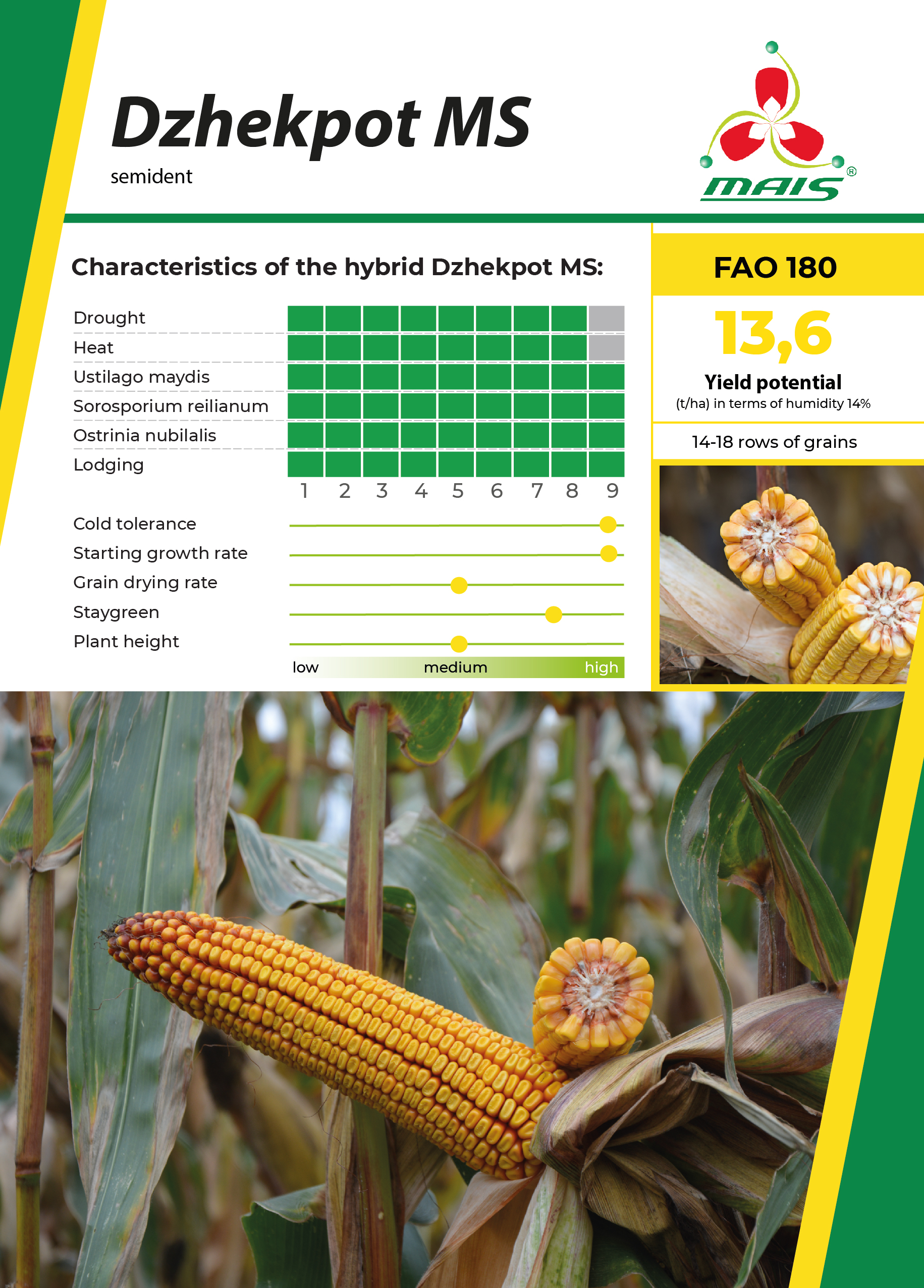 13,6 – Yield potential (tons per hectar in terms of humidity 14%)